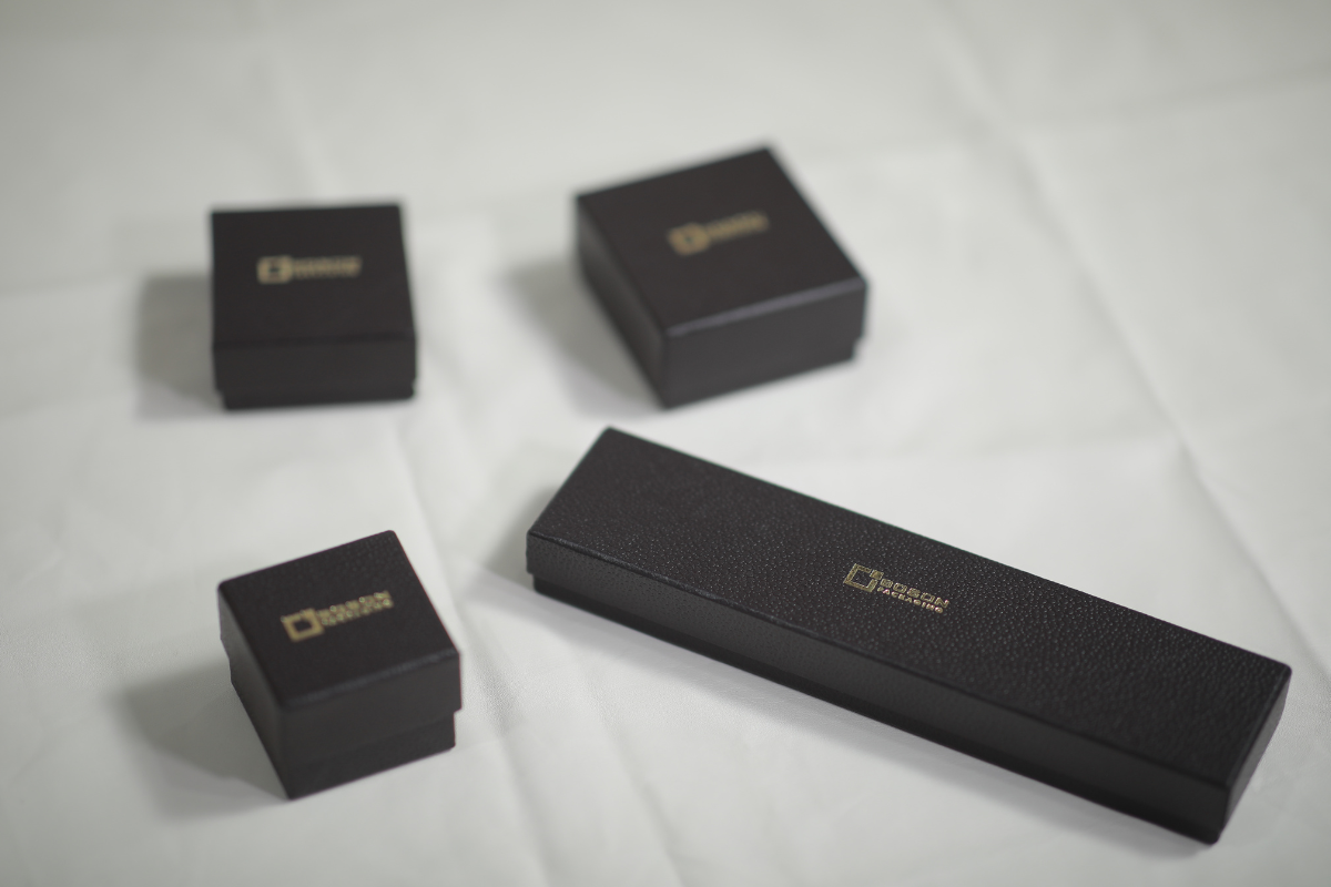 The boxes used for Diamond category in jewellery. This boxes made by ABS plastic shell covered by special imported paper and inside fittings made by felt fabric, polyster fabric, velvet as per their requirement with brand name & logo.